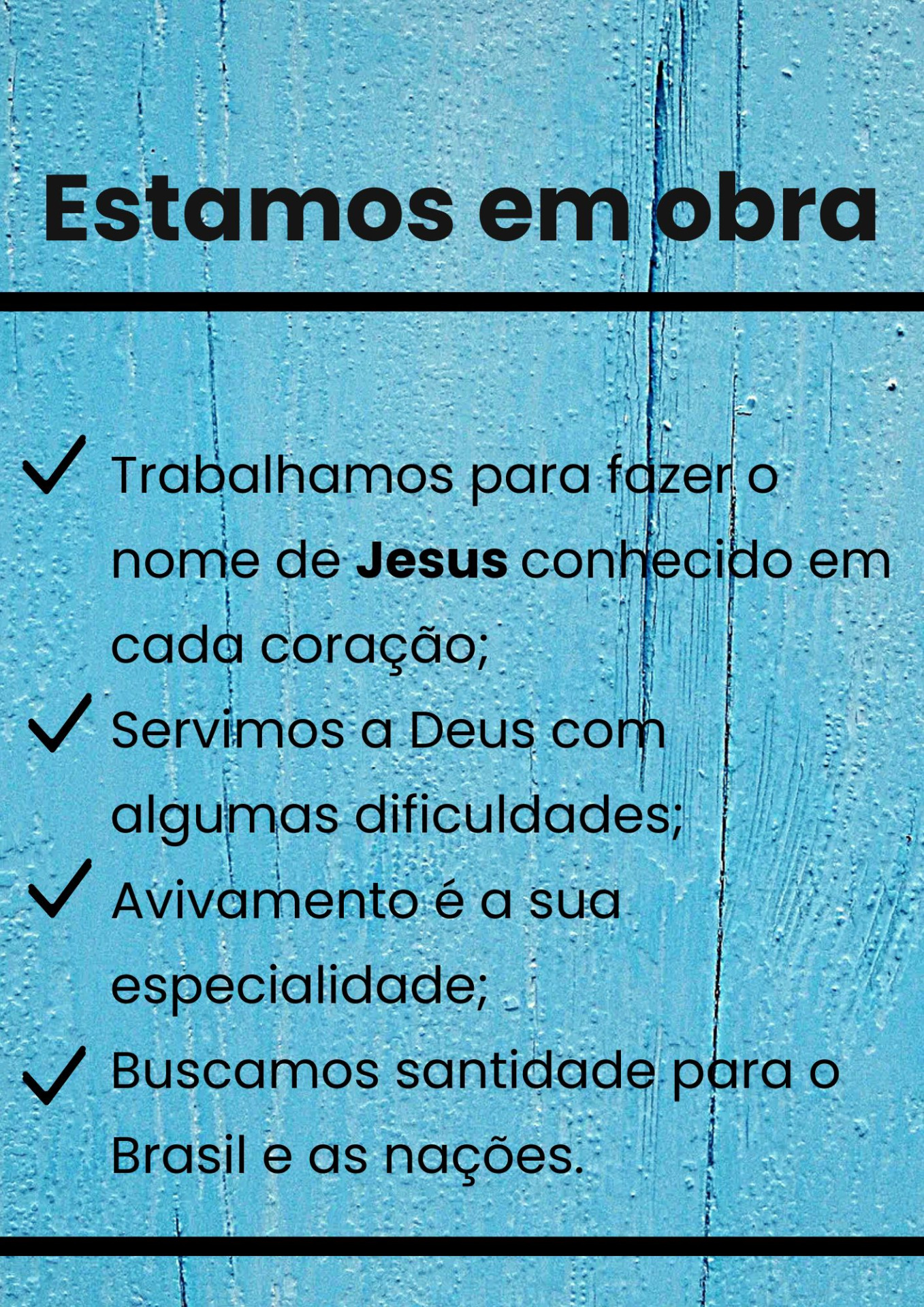 * * * Reconhecemos que Jesus é Superior sendo o Filho de Deus, pregamos o evangelho do reino por toda a vizinhança, para ser sua testemunha a todas às nações.